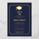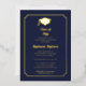 Un design simple mais élégant de faire-part de remise de diplômes avec cadre arrondi et enroulé avec feuille d'or véritable et bleu foncé qui peut être personnalisé pour les remises de diplômes de lycée, de collège ou d'université. Conception de Holiday Hearts Designs (tous droits réservés).
