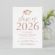 Invitez les invités à célébrer le diplômé avec nos invitations modernes pour la fête de remise des diplômes de la promotion 2026. Les invitations présentent une casquette de diplômé en haut avec "Promotion 2026" affiché en lettrage de feuille rose or. Personnalisez les invitations en ajoutant le nom du diplômé, de l'école et les détails de la fête de remise des diplômes. Les invitations de fête de remise des diplômes en feuille rose or se retournent pour afficher la photo du diplômé.