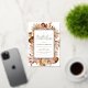 Cette élégante invitation à déjeuner nuptiale présente un cadre en feuille d'or et une aquarelle boho peinte à la main, des feuilles orange et terre cuite, des dahlias crème et beige, et de beaux roses couleur rouille sur un arrière - plan blanc. Trouvez les articles correspondants dans la collection White Autumn Romance.