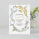 Feuilles d'aquarelle moderne mais élégant et citrouille blanc personnalisées invitations de douche nuptiale encadre vos détails d'événement avec une bordure de botaniques aquarelles dans les tons de sauge vert et de véritable feuille d'or. Les détails de votre événement sont définis dans une simple sans serif et type de script dans un vrai papier d'aluminium pressé. Parfait pour les invitations d'automne et de mariage de automne. Pour voir des faire-part de mariage plus élégantes comme cette visite VG Invitations sur Zazzle à www.zazzle.com/vginvites