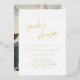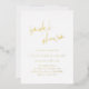 Élégante invitation à la douche nuptiale de style typographique avec un agencement simple et minimal avec une combinaison d'une police serif classique et une calligraphie manuscrite moderne. Tout le texte à l'avant est en papier d'aluminium et le dos a votre photo préférée.