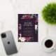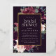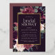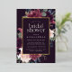L'élégante invitation à la douche à nuptiale florale présente une bordure de marsala bordeaux pourpre, rose rousse et bleu poussiéreux, avec un feuillage botanique luxuriant et des garnitures en feuille d'or et de verdure. Personnalisez avec vos détails de douche nuptiale en lettres modernes sur un riche arrière - plan violet foncé.
