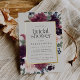 L'élégante invitation à la douche à nuptiale florale présente une bordure de marsala bordeaux pourpre, rose rousse et bleu poussiéreux, avec un feuillage botanique luxuriant et des garnitures en feuille d'or et de verdure. Personnalisez avec vos détails de douche nuptiale en lettrage moderne sur un vintage crème ivoire d'arrière - plan blanc.