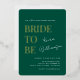 Invitations de douche nuptiale vert foncé et or avec un design moderne. Le texte "Bride to be" sera imprimé en papier métallique.