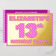 La face avant de cette carte de faire-part amusante et audacieuse de fête du treizième anniversaire comporte un nom modifiable, un grand numéro "13e", le message "FÊTE DE L'ANNIVERSAIRE !", et une bordure, toutes avec un motif rayé rose foncé et rose clair féminin. Le verso présente des détails personnalisés sur l'événement, tels que la date, l'heure, le lieu et toute autre information qui peut être utile. Des invitations customisées comme celles-ci pourraient être utilisées pour les invités invitations à une fête d’anniversaire qui se tient pour honorer le 13e anniversaire de quelqu’un. [~Z0000597]