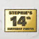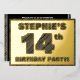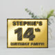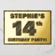 La façade de cette carte d'invitation en papier de fête audacieuse à quatorzième anniversaire comporte un nom modifiable, un grand numéro "14e", le message "ANNIVERSAIRE FÊTE !", et une bordure, toutes avec un aspect rustique, mais sophistiqué, de grain de bois inspiré motif. Le verso présente des détails personnalisés sur l'événement, tels que la date, l'heure, le lieu et toute autre information utile. Des invitations personnalisables comme celles-ci peuvent être utilisées pour les invités invitations à une fête d’anniversaire qui se tient pour célébrer le 14e anniversaire de quelqu’un. [~Z0000595]
