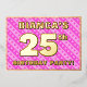 La façade de cette joyeuse carte d'invitation à fêtes de vingt-cinquième anniversaire comporte un nom modifiable, un grand numéro "25e", le message "FÊTE D'ANNIVERSAIRE !", et une frontière. L'arrière - plan de l'avant est doté d'un motif aimant aux rayures rose foncé et rose clair et aux formes cardiaques. Le verso présente des détails personnalisés sur l'événement, tels que la date, l'heure, l'emplacement/le lieu et toute autre information utile. Des invitations customisées comme celles-ci pourraient être une façon amusante pour les participants invitations/invités à une réunion d’anniversaire qui se tient pour célébrer le 25e anniversaire de quelqu’un. [~Z0000603]