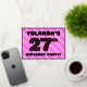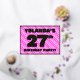 La façade de cette amusante carte d'invitation de fête/fête du vingt-septième anniversaire comporte un nom personnalisé, un grand numéro "27e", le message "FÊTE D'ANNIVERSAIRE !", et une frontière. L'arrière - plan de l'avant a un motif aimant avec des rayures rose clair et rose foncé et des formes cardiaques. Le verso présente des détails personnalisés sur l'événement, tels que la date, l'heure, le lieu et toute autre information importante. Des invitations personnalisées comme celles-ci pourraient être une façon amusante pour les participants invitations à une fête d’anniversaire organisée pour honorer le 27e anniversaire de quelqu’un. [~Z0000603]