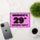 La façade de cette carte d'invitation à fêtes de vingt-neuvième anniversaire joyeuse et optimisée comporte un nom modifiable, un grand numéro "29e", le message "FÊTE D'ANNIVERSAIRE !", et une frontière. L'arrière - plan de l'avant est doté d'un motif rayé rose foncé et rose clair qui aime les formes cardiaques. Le verso présente des détails personnalisés sur l'événement, tels que la date, l'heure, le lieu et toute autre information importante. Des invitations personnalisables comme celles-ci pourraient être une façon amusante pour les participants invitations à une fête d’anniversaire organisée pour célébrer le 29e anniversaire de quelqu’un. [~Z0000603]