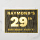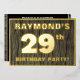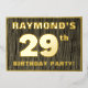 Le recto de cette carte d'invitation audacieuse à fêtes de vingt-neuvième anniversaire comporte un nom personnalisé, un grand numéro "29e", le message "FÊTE D'ANNIVERSAIRE !", et une frontière, le tout en papier peint. L'arrière - plan de l'avant présente un motif rustique, mais sophistiqué, d'apparence de grain de bois inspiré. Le verso présente des détails personnalisés sur l'événement, tels que la date, l'heure, l'emplacement/le lieu et toute autre information pertinente. Des invitations personnalisées comme celles-ci peuvent être utilisées pour les invités invitations à une fête d’anniversaire ou à une réunion organisée pour célébrer le 29e anniversaire de quelqu’un. [~Z0000598]
