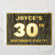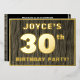 Le recto de cette carte d'invitation audacieuse pour fêter le trentième anniversaire comporte un nom personnalisable, un grand numéro "30ème", le message "FÊTE D'ANNIVERSAIRE !", et une bordure, le tout en papier peint. L'arrière - plan de l'avant est doté d'un motif rustique, mais sophistiqué, imitation grain de bois inspiré. Le verso présente des détails personnalisés sur l'événement, tels que la date, l'heure, le lieu/lieu et toute autre information utile. Des invitations personnalisables comme celles-ci peuvent être utilisées pour les invités invitations à une fête d’anniversaire organisée pour célébrer le 30e anniversaire de quelqu’un. [~Z0000598]