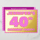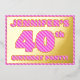 La façade de cette carte d'invitation amusante et audacieuse à fêtes de quarantième anniversaire/fête comporte un nom personnalisé, un grand numéro "40e", le message "FÊTE D'ANNIVERSAIRE !", et une bordure, toutes avec un motif rose clair et rose foncé féminin. Le verso présente des détails personnalisés sur l'événement, tels que la date, l'heure, le lieu et toute autre information qui peut être importante. Des invitations modifiables comme celles-ci peuvent être utilisées pour les invités invitations à une fête d’anniversaire ou à une réunion qui se tient pour célébrer le 40e anniversaire de quelqu’un. [~Z0000597]