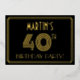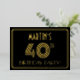 La façade de ce style des années 1920-1930 a inspiré la célébration de quarantième anniversaire / invitation de fêtes comprend un nom personnalisé, un grand look art déco inspiré numéro "40TH", le message "BIRTHDAY PARTY!", et un motif frontalier composé de lignes. Il y a un arrière - plan de couleur noire sur le devant par défaut, mais il peut être customisé à une couleur différente si désiré. Le verso présente des détails personnalisés sur l'événement, tels que la date, l'heure, l'emplacement et toute autre information pertinente. Des invitations élégantes, luxueuses et modifiables comme celles-ci peuvent être utilisées pour les invités invitations à une fête d’anniversaire ou à une fête qui a lieu pour célébrer le 40e anniversaire de quelqu’un. [~Z0000590]