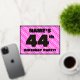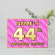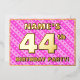 La façade de cette joyeuse carte d'invitation de fête de quarante-quatrième anniversaire/fête de fête comporte un nom personnalisé, un grand numéro "44e", le message "FÊTE D'ANNIVERSAIRE !", et une frontière. L'arrière - plan de l'avant a un motif aimante rose foncé et rose clair rayures contenant des formes cardiaques. Le verso présente des détails personnalisés sur l'événement, tels que la date, l'heure, le lieu et toute autre information qui peut être importante. Des invitations personnalisables comme celles-ci pourraient être une façon amusante pour les invités invitations d’un rassemblement d’anniversaire organisé pour célébrer le 44e anniversaire de quelqu’un. [~Z0000603]