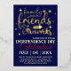 Personnalisez ces invitations de fête du 4 juillet en feuille d'aluminium attrayantes et envoyez-les à votre famille et à vos amis pour une célébration de la fête de l'Indépendance. Le texte « family friends and fireworks » est en véritable feuille d'or pour lui donner un aspect unique et élégant.
