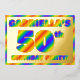 La façade de cette carte d'invitation pour fêter le cinquantième anniversaire et fêter le cinquantième anniversaire est ornée d'un nom éditable, d'un grand numéro "50ème", du message "FÊTE DE L'ANNIVERSAIRE !", et d'une bordure, tous dotés d'un passionnant motif multicolore inspiré du spectre arc-en-ciel. Le verso présente des détails personnalisés sur l'événement, tels que la date, l'heure, le lieu/lieu et toute autre information importante. Des invitations personnalisées, dynamiques et optimistes comme celles-ci pourraient être utilisées pour les invités invitations à une fête d’anniversaire organisée pour célébrer le 50e anniversaire de quelqu’un. [~Z0000593]
