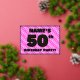 La façade de ce modèle de carte d'invitation à la fête du cinquantième anniversaire est ornée d'un nom modifiable, d'un grand numéro "50ème", du message "FÊTE D'ANNIVERSAIRE !" et d'une bordure. L'arrière - plan de l'avant a un amusant motif rayé rose clair et rose foncé contenant des formes cardiaques. Le verso présente des détails personnalisés sur l'événement, tels que la date, l'heure, le lieu et toute autre information importante. Des invitations modifiables comme celles-ci pourraient être une façon amusante pour les participants invitations à une fête d’anniversaire organisée pour honorer le 50e anniversaire de quelqu’un. [~Z0000603]