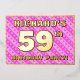 La façade de cette carte d'invitation à fêtes de cinquante-neuvième anniversaire, pleine d'optimisme, porte un nom personnalisé, un grand numéro "59e", le message "FÊTE D'ANNIVERSAIRE !" et une frontière. L'arrière - plan de l'avant présente un motif amusant rose foncé et rose clair rayures, aux formes cardiaques. Le verso présente des détails personnalisés sur l'événement, tels que la date, l'heure, le lieu et toute autre information qui peut être importante. Des invitations customisées comme celles-ci pourraient être une façon amusante pour les participants invitations à une réunion d’anniversaire qui se tient pour célébrer le 59e anniversaire de quelqu’un. [~Z0000603]