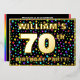 La façade de ce dessin animé et passionnant de carte d'invitation de fête de soixante-dixième anniversaire comporte un nom modifiable, un grand numéro "70e", le message "FÊTE D'ANNIVERSAIRE !", et une frontière. L'arrière - plan de l'avant est doté d'un motif haut en couleurs aux formes étoiles. Le verso présente des détails personnalisés sur l'événement, tels que la date, l'heure, le lieu et toute autre information pertinente. Des invitations personnalisables comme celles-ci pourraient être une façon amusante pour les invités invitations à une fête d’anniversaire ou à une réunion qui se tient pour célébrer le 70e anniversaire de quelqu’un. [~Z0000600]