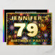 La façade de cette carte d'invitation de soixante-dix-neuvième anniversaire captivante comporte un nom personnalisé, un grand numéro "79e", le message "FÊTE D'ANNIVERSAIRE !", et une frontière. L'arrière - plan du devant présente un motif audacieux et coloré, inspiré du feu d'artifice, qui explose. Le verso présente des détails personnalisés sur l'événement, tels que la date, l'heure, l'emplacement/le lieu et toute autre information utile. Des invitations modifiables comme celles-ci pourraient être une façon amusante pour les participants invitations à une fête d’anniversaire organisée pour célébrer le 79e anniversaire de quelqu’un. [~Z0000602]