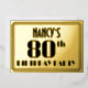 La façade de cette élégante et Roaring Twenties era inspiré quatre-vingtième anniversaire fêté/foil d'invitation conception de carte d'invitation comprend un nom personnalisé, un style art déco inspiré le numéro "80th", le message "ANNIVERSAIRE", et une frontière multiligne. Le verso présente des détails personnalisés sur l'événement, tels que la date, l'heure, le lieu et toute autre information utile. Des invitations élégantes, luxueuses et customisées comme celles-ci pourraient être utilisées pour les invités invitations à un rassemblement d’anniversaire qui se tient pour honorer le 80e anniversaire de quelqu’un. [~Z0000606]