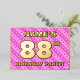La façade de cette carte d'invitation à quatre-vingt-huitième anniversaire, joyeuse et optimisée, comporte un nom personnalisé, un grand numéro "88e", le message "FÊTE D'ANNIVERSAIRE !" et une frontière. L'arrière - plan de l'avant est doté d'un motif rayé rose clair et rose foncé, aux formes cardiaques. Le verso présente des détails personnalisés sur l'événement, tels que la date, l'heure, l'emplacement/le lieu et toute autre information pertinente. Des invitations personnalisées comme celles-ci pourraient être une façon amusante pour les participants invitations à un rassemblement d’anniversaire organisé pour célébrer le 88e anniversaire de quelqu’un. [~Z0000603]