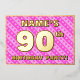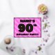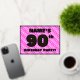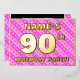 La façade de cette carte d'invitation joyeuse et optimisée de quatre-vingt-dixième anniversaire/fête comporte un nom personnalisé, un grand numéro "90e", le message "FÊTE D'ANNIVERSAIRE !", et une frontière. L'arrière - plan de l'avant est doté d'un motif rayé rose clair et rose foncé, aux formes cardiaques. Le verso présente des détails personnalisés sur l'événement, tels que la date, l'heure, le lieu/lieu et toute autre information utile. Des invitations customisées comme celles-ci pourraient être une façon amusante pour les invités invitations d’un rassemblement d’anniversaire organisé pour honorer le 90e anniversaire de quelqu’un. [~Z0000603]