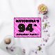 La façade de cette carte d'invitation amusante et optimisée de quatre-vingt-quatorze ans/fête de fête comporte un nom modifiable, un grand numéro "94e", le message "FÊTE D'ANNIVERSAIRE !", et une frontière. L'arrière - plan de l'avant est doté d'un motif rayé rose clair et rose foncé qui aime les formes cardiaques. Le verso présente des détails personnalisés sur l'événement, tels que la date, l'heure, le lieu/lieu et toute autre information qui peut être importante. Des invitations personnalisables comme celles-ci pourraient être une façon amusante pour les invités invitations à une fête d’anniversaire ou à une réunion qui se tient pour célébrer le 94e anniversaire de quelqu’un. [~Z0000603]