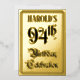 Le recto de cette fêteuse carte d'invitation de fêtes de quatre-vingt-quatorze ans présente le message "94th Birthday Celebration" dans un élégant texte de style script. Il comporte également un nom modifiable. Le verso présente des détails personnalisés sur l'événement, tels que la date, l'heure, l'emplacement/le lieu et toute autre information qui peut être importante. Des invitations luxueuses, élaborées et modifiables comme celles-ci pourraient être utilisées pour les invités invitations à une fête d’anniversaire qui se tient pour célébrer le 94e anniversaire de quelqu’un. [~Z0000596]