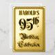 La façade de cette carte de faire-part fêtée et opulente de quatre-vingt-quinze ans/fêtes de fête comporte le message "95e anniversaire de célébration" dans un texte orné de style script. Il a également un nom personnalisé. Le verso présente des détails personnalisés sur l'événement, tels que la date, l'heure, le lieu et toute autre information utile. Des invitations personnalisées, complexes et élégantes, comme celles-ci pourraient être utilisées pour les invités invitations à une fête d’anniversaire organisée pour célébrer le quatre-vingt-quinzième anniversaire de quelqu’un. [~Z0000596]