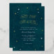 Une invitation élégante à une fête de Noël avec un fond bleu sarcelle et un cadre d'étoiles scintillantes. Ce design polyvalent peut être utilisé pour la fête annuelle des fêtes d'une famille ou pour une fête des fêtes d'entreprise.