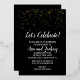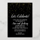 Invitation En Aluminium Fêtons les Confettis dorés sur Fond noir Engagemen