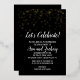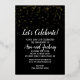 Cette invitation en papier d'or pour fête de fiançailles avec des confettis en or sur fond noir est parfaite pour une célébration de fiançailles élégante. Le design présente de véritables confettis en papier d'or avec une calligraphie blanche élégante sur fond noir. Personnalisez l'invitation avec les noms du couple.