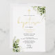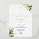 Cette invitation de baptême au feuillage botanique élégant avec véritable feuille d'or peut être personnalisée avec vos informations en typographie chic avec vos initiales monogramme au verso. Conçue par Thisisnotme©