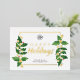 Classy moderne horizontale heureux vacances entreprises à la fois d'imprimer latéralement carte de voeux plat avec un endroit pour votre logo avec élégant classique aquarelle feuilles de noël et vrai doré cadre pressé et heureux texte de vacances sur un arrière - plan blanc propre. Carte de voeux de Noël parfaite pour les entreprises, les petites entreprises, les entreprises à domicile, les employés, les entreprises de vacances ou toute organisation, le design moderne donnera à vos clients l'impression de luxe et de succès. Le côté arrière a un libellé personnalisé. Ce modèle de carte Happy Holidays est prêt pour votre personnalisation en ligne. La feuille d'or peut être changée en or ou argent rose.