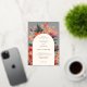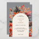 Invitation de mariage grise sophistiquée avec des feuilles d'érable à l'aquarelle et des détails floraux avec des touches d'orange brûlé. Parfait pour les célébrations rustiques modernes ou bohèmes d'automne.