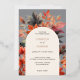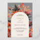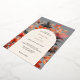 Carton d'invitation de mariage gris sophistiqué avec des feuilles d'érable à l'aquarelle et des détails floraux avec des touches d'orange brûlé. Parfait pour les célébrations modernes rustiques ou bohèmes d'automne.