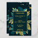 Feuilles dorées, invitation verte foncé. Personnalisez facilement pour les mariages, les fêtes prénatales, les anniversaires, les départs à la retraite et toutes les soirées.