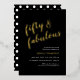 Celebrate your 50th Birthday in elegant style with this Fifty and Fabulous gold foil script modern 50th birthday invitation. Personalizable with your name and fiftieth birthday party celebration details. To the front is 'Fifty and Fabulous' in an elegant and playful gold script text on a black background, complemented with clean and minimal serif typography in white for all your details. All text colors can be changed to anything you wish using the edit menu. The reverse is finished with a white polka dot pattern - a glam and fabulous choice for your fiftieth celebration!