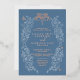 Fleur de lis printanière dessinée à la main style élégant faire-part de mariage encadré avec fleurs printanières stylisées, feuilles, tendres et petits papillons. En bleu gris, personnalisez avec vos propres détails mariages et initiales monographiques en haut. D'autres couleurs et objets correspondants sont disponibles ou peuvent être créés sur demande. © Dessin à la main original et design par Sarah Trett pour www.mylittleedenweddings.com sur Zazzle.