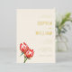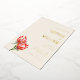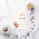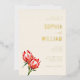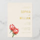 Cette élégante invitation de mariage présente un fond crème doux avec des tons dorés et floraux chaleureux, créant une atmosphère sophistiquée et invitante. Le design comprend des illustrations réalistes de fleurs de protea dans des rouges et des oranges riches, ajoutant une touche vibrante à la mise en page minimaliste. La typographie combine des polices script et serif pour une hiérarchie raffinée, tandis qu'un espace négatif généreux assure la clarté et l'élégance. Parfaite pour les couples recherchant une ambiance formelle et festive, cette invitation est idéale pour marquer l'occasion spéciale d'un mariage.