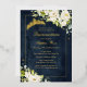 Invitation En Aluminium Fleur Papillon Doré Navy Quinceanera