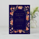 Elégante Fleur sauvage arche marine bleu et doré mariage de automne invitation. Cette faire-part de mariage boho enchanteresse est un mélange de chaleur automnale et de charme élégant. Avec ses fleurs sauvages aquarellés peints à la main dans un design de couronnes délicieuses, l'invitation présente une riche palette de couleurs : orange brûlé, marron, jaune, vert, terre cuite, pêche, corail, violet et rose. Les tons chauds de terre et le riche arrière - plan bleu marine créent une harmonie parfaite, ce qui en fait un choix idéal pour un mariage de automne. Les élégantes touches dorées apportent une touche de sophistication, tandis que l'élégant script en papier doré ajoute une touche personnelle et classique à tous vos détails mariages essentiels. Conçu par l'artiste de talent Catherine Sweetman, cette invitation unique incarne l'esprit d'une célébration intime et cosy au coeur de l'automne. Avec un modèle facile à personnaliser, il offre une façon transparente de transmettre vos informations mariages avec style et art. L'arrière - plan dans un bleu marine riche en ajoutant une chaleur naturelle, donnant vie aux magnifiques fleurs d'une façon qui se sent à la fois frais et intemporelle.