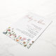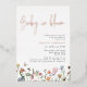Une invitation à baby shower à thème Baby in Bloom, joliment déjoué. Cette invitation comporte un titre "Baby in florom" en feuille d'or rose police de style manuscrit moderne, et une planche de fond de fleurs sauvages aquarelle et papillon. L'inverse est composé d'un motif de fleurs sauvages et de papillons. Personnalisez avec vos détails.