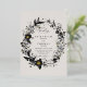 Fleurs sauvages audacieux et verdure sauvage, peints en encre noire sur un arrière - plan blanc ivoire, aux accents de feuille d'or pour les étamines des fleurs, se mêlent pour former une somptueuse couronne mariage florale sur cette faire-part de mariage moderne, élégante, noire et blanche. Design élégant et intemporel pour le romantique moderne, cette invitation florale combine le thème formel noir et blanc avec l'esthétique fleur sauvage féminine et ludique pour un parfait mélange d'élégance sophistiquée.