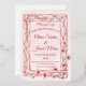 Cette belle faire-part de mariage florale à l'aquarelle rose vif fleurit sur un treillis d'or rose à l'aquarelle rose pâle.