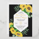 Le design présente un bouquet de tournesols aquarelle, d'eucalyptus et d'autres feuilles et brindilles sur arrière - plan noir. Doté d'un luxueux texte en feuille d'or.