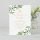 Famille Invitation et amis à votre diplôme avec cette feuille d'or personnalisable pressé l'invitation de la fête de graduation. Il présente des illustrations aquarelle et motif de feuillage et de fleurs blanches. Cette invitation à la remise des diplômes de verdure est parfaite pour les diplômes de printemps et de jardin. Cette invitation à la fête de la feuille d'or est disponible en d'autres couleurs de feuille d'or.