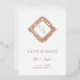 Floral Ornate Frame in Diamond Shape with Initials Photo Wedding Rose Gold Metallic Foil Save the Date Card.
