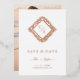 Announce your wedding with elegance and sophistication using our Save the Date card featuring a floral ornate frame in a diamond shape with initials. This exclusive design is adorned with a detailed floral frame in a diamond shape, highlighted with delicate rose gold metallic foil, adding a touch of luxury and distinction.